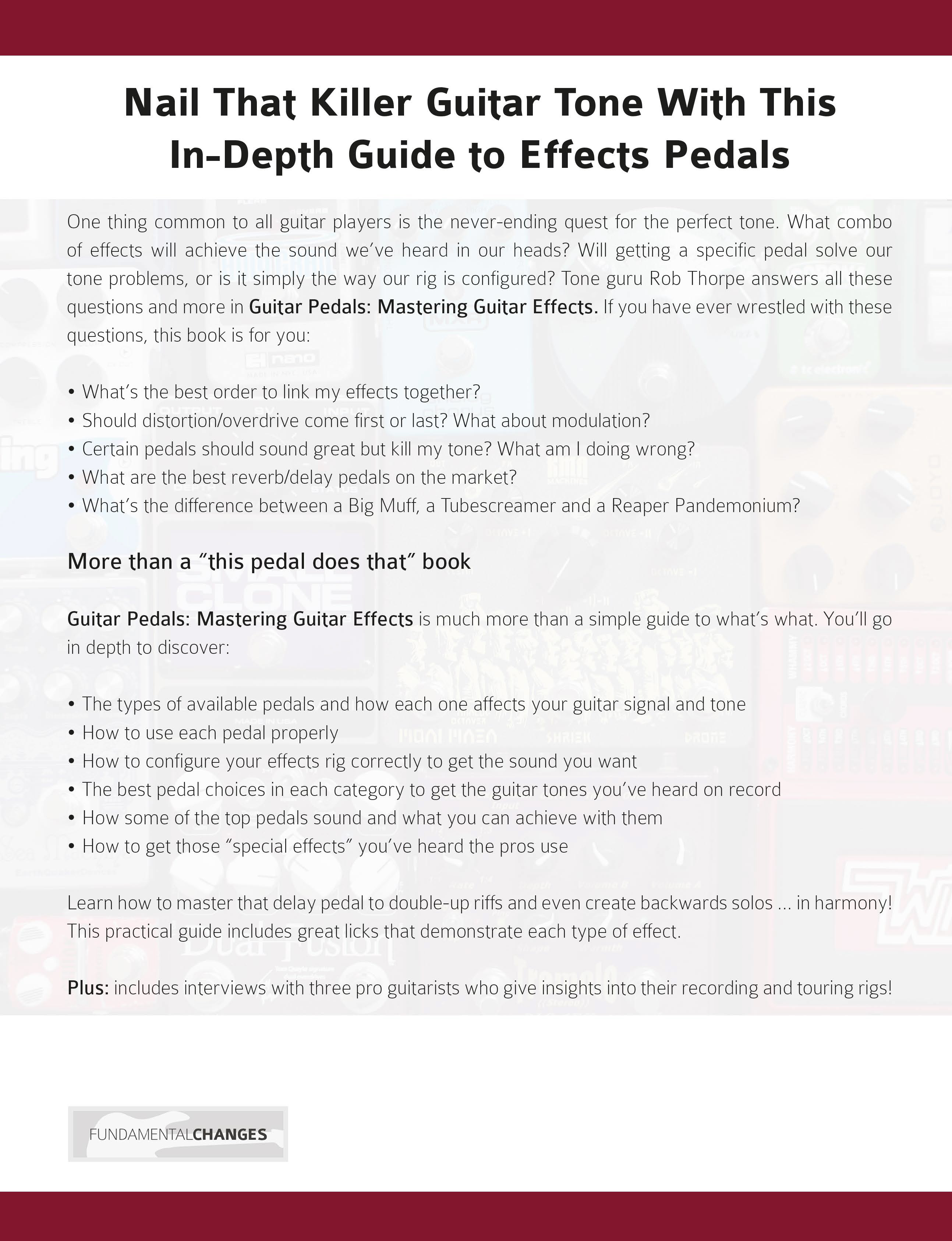 Guitar Pedals: Mastering Guitar Effects is much more than a simple guide to the types of guitar effects.