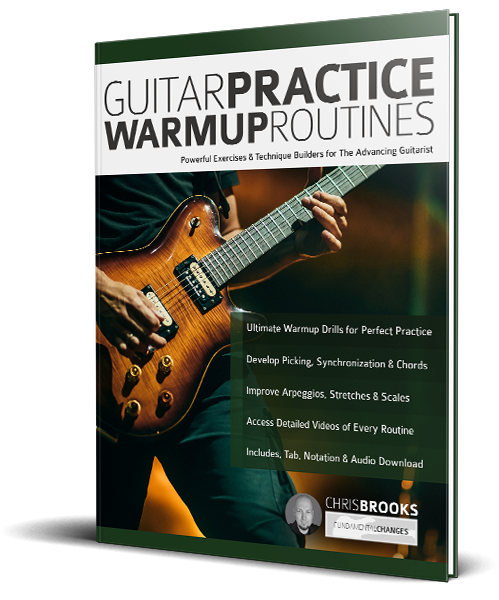 We’ve all seen those boring 1 2 3 4 warmup exercises on YouTube, and the truth is they don’t achieve much and are certainly not musically meaningful. In Guitar Practice Warmup Routines Chris Brooks packs in over 90 fun, developmental musical warmups that get you ready for perfect practice.